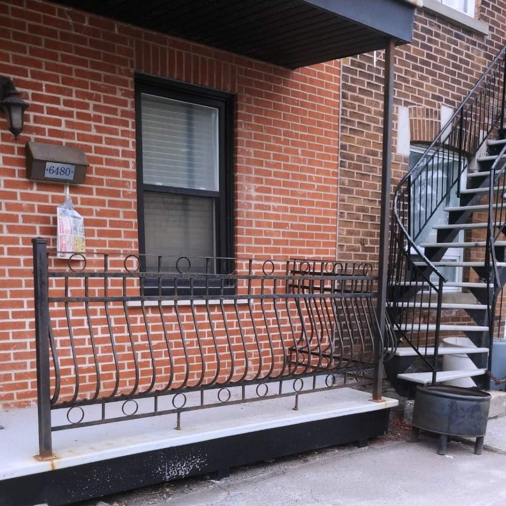 Travaux de réparation et d’entretien des mains courantes, des rampes et des balustrades. Compris la réparation ou le remplacement des pièces endommagées, le sablage et la peinture pour restaurer l’aspect d’origine.